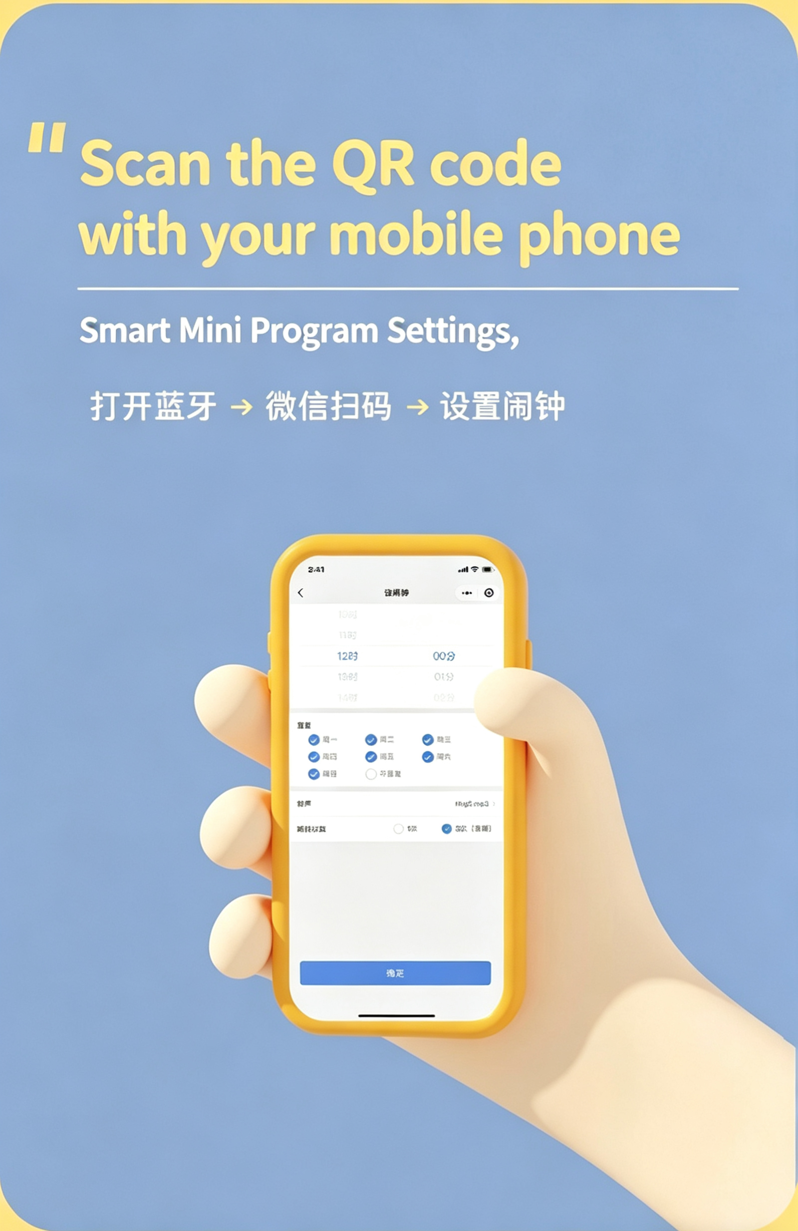 ✅ Smart App Control: Set alarms/timers via WeChat mini program (Bluetooth required).