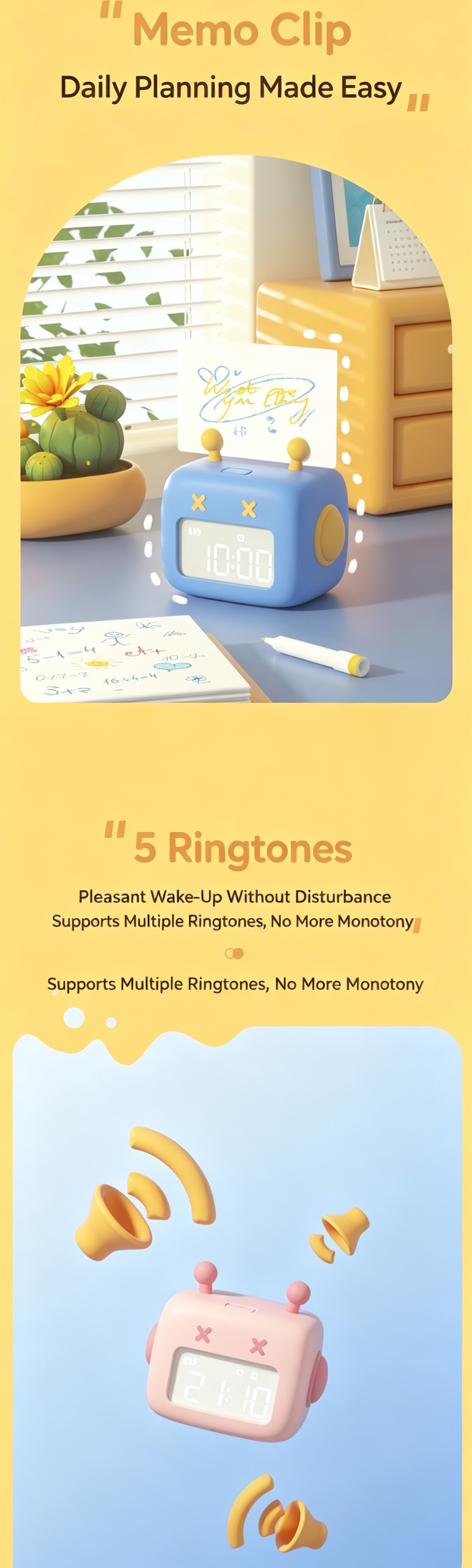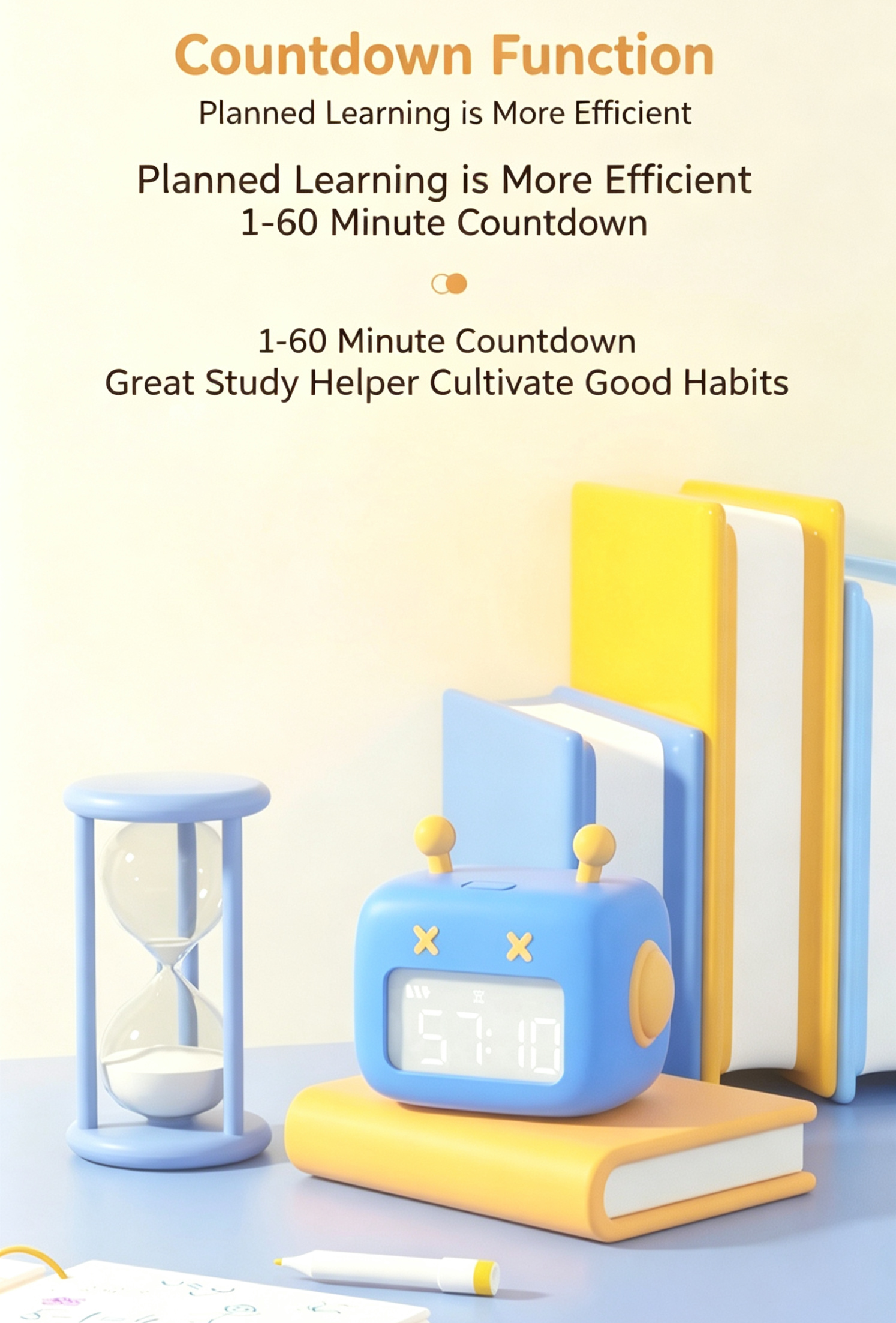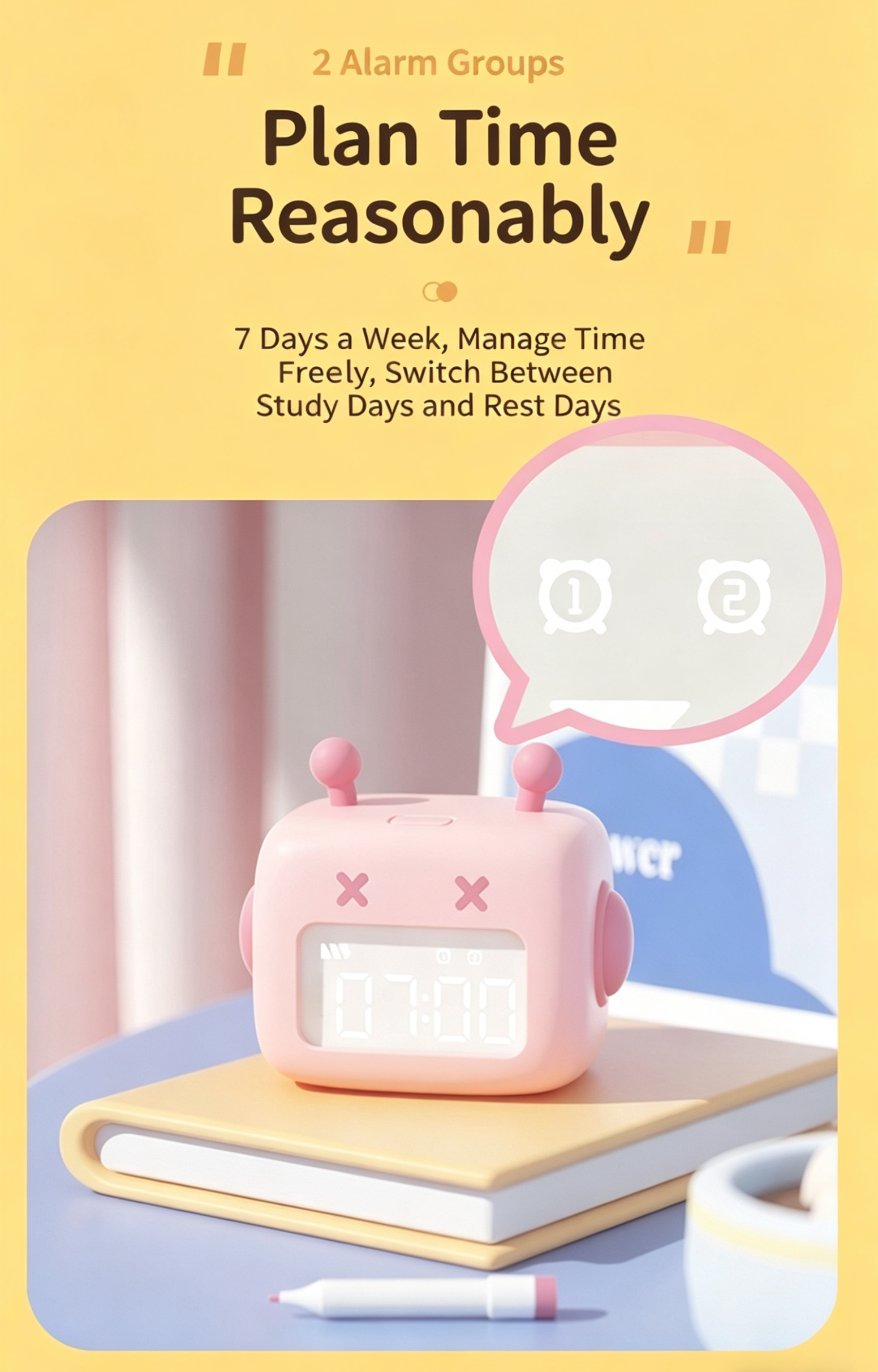 ✅ Dual Alarms & 1-60min Countdown: Manage school/weekend schedules; boost study efficiency.