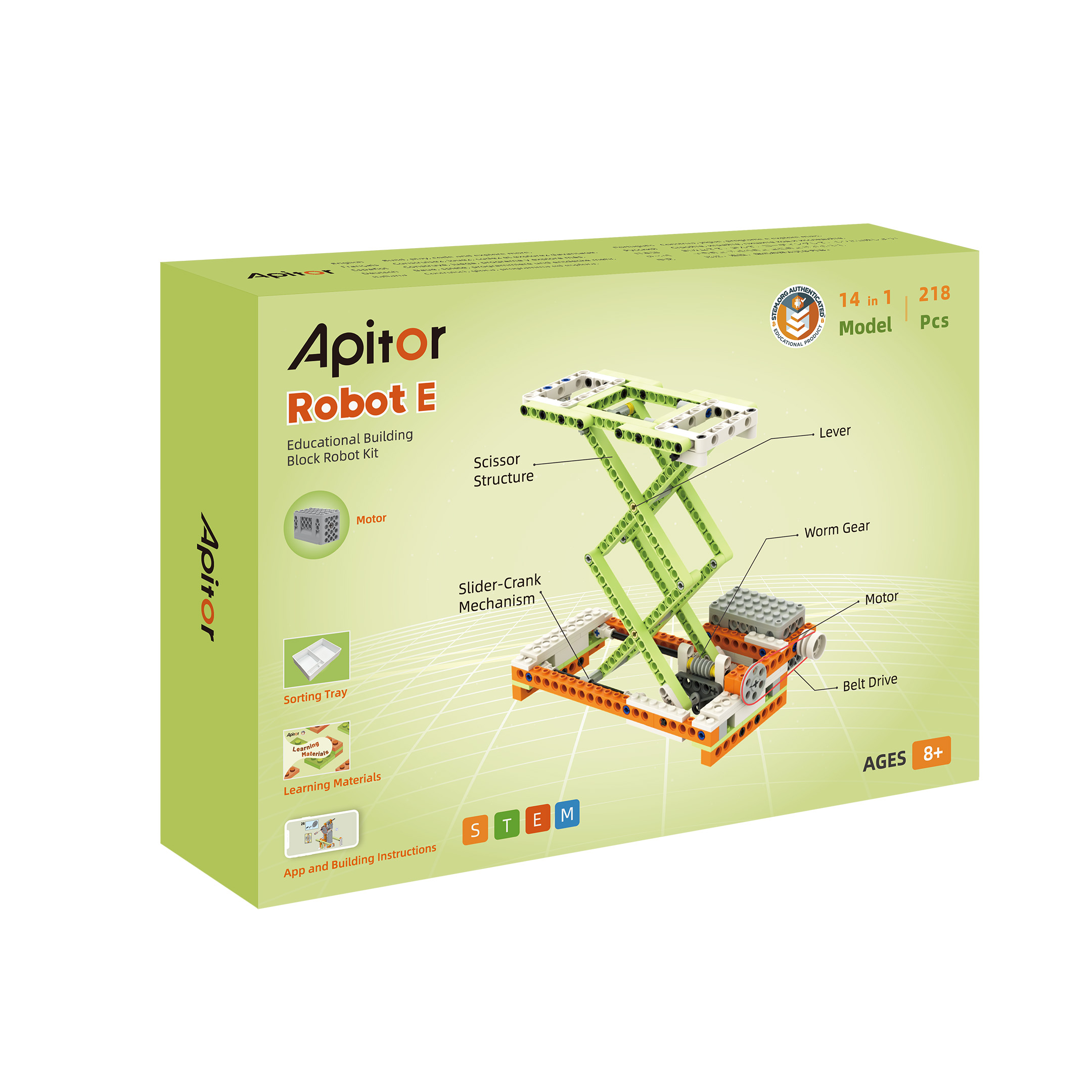Educational Building Block Robot Kit, 14-in-1 Model, 218 Building Blocks, 1 Control Module, 1 Motor, Apitor Kit App, Buidling Instructions, Sorting Tray, Study Materials Principles, Special for Education, Ages 8+
