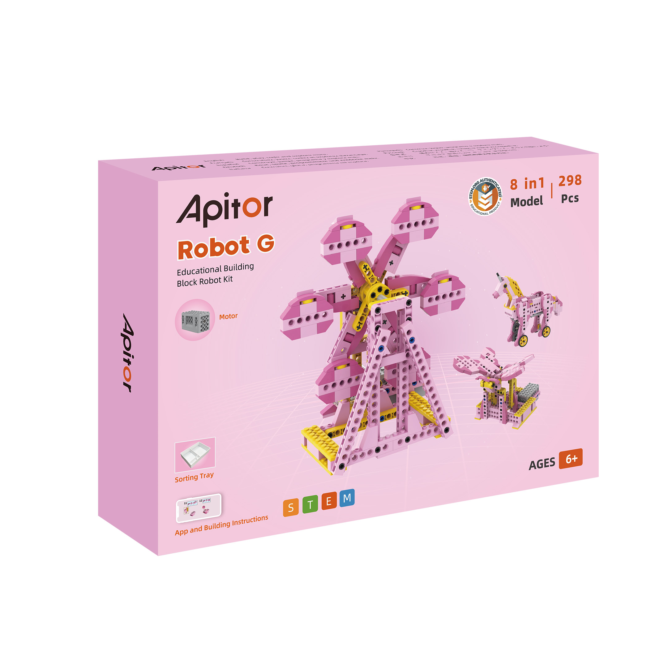 Educational Building Block Robot Kit, 8-in-1 Model, 298 Building Blocks, 1 Control Module, 1 Motor, Apitor Kit App, Buidling Instructions, Sorting Tray, Designed for Girls, Ages 6+