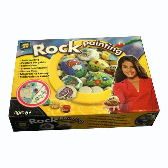 Featured here is the rock painting set designed for children to express their creativity and artistic talent. A set of colorful paints is provided for children to decorate the stones in their very own patterns.
