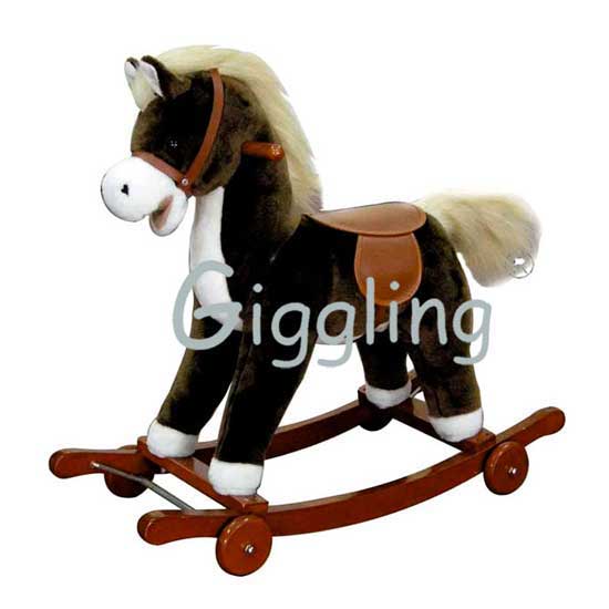 The rocking horse is constructed of popular wooden base and short plush, polyfoam mold or plush stuffed body. The horse features galloping sound, cowboy song with moving month and wagging tail. Children are surely happy to have one rocking horse.