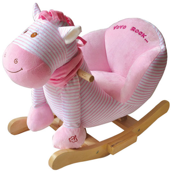As shown to you is a rocking pony designed with a seat for a comfortable riding experience. The pinkish striped design showcases a sense of loveliness. It will surely steal your baby’s heart.