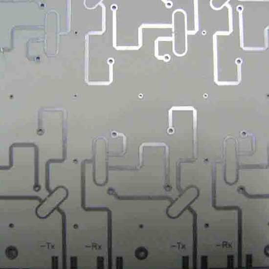 Pictured is a printed circuit board (PCB) with a ceramic-based structure. The PCB is double-sided for enhanced performance. It makes a vital part in many electronic designs.