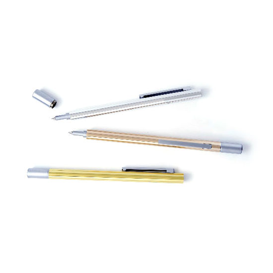 This is a roller pen with a slender and straight barrel. It is available in assorted colors for your selection. This pen comes with a silvery pocket clip for easy carrying.
