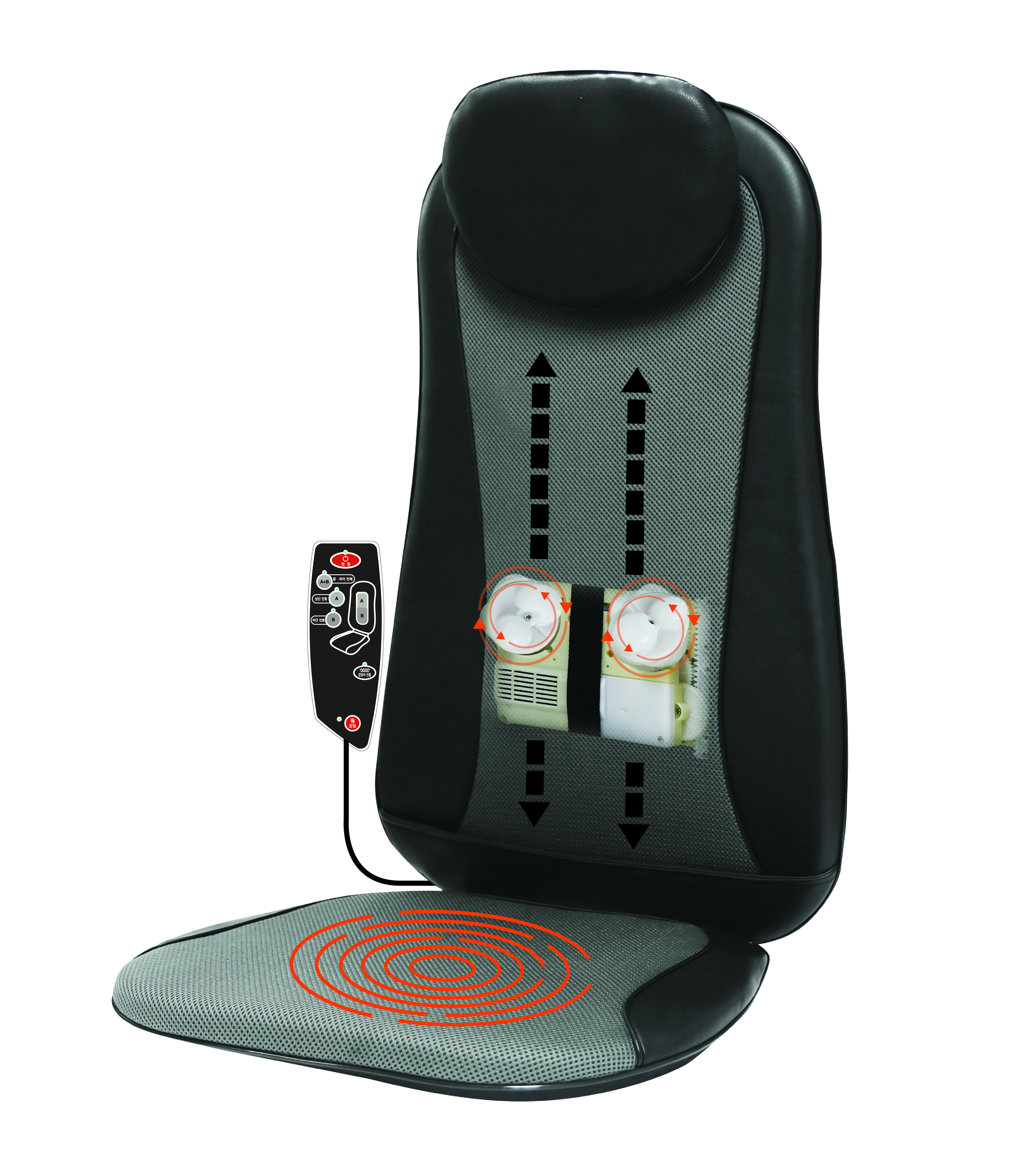 *4 rolling massage head provide full back massage *massage type including rolling, shiatsu massage *heating function improve the blood circulation *come with the home adaptor and car adaptor *seat vibration *15mins timer setting *3 modes:full back-upper back-lower back |