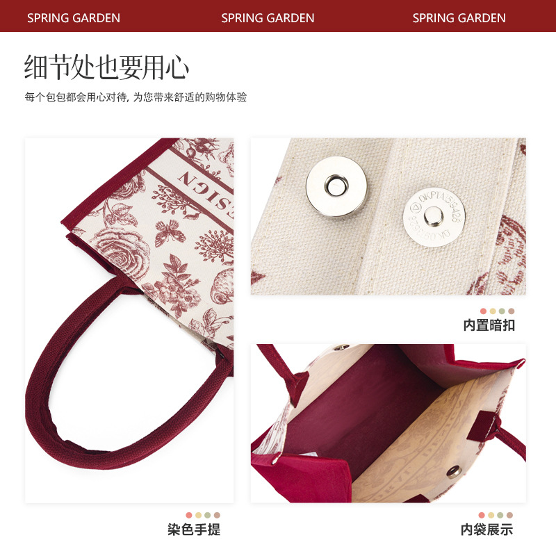 • WASHING NOTICE: cleaning of 100% cotton bags is not recommended. The washing shrinkage rate exceeds 10%. Should it be seriously dirty, it is recommended to wash it in cold water by hand. Hang dry is necessary before high- temperature ironing. Please notice that the fabric may not return to the original flatness. Flash drying and machine wash shall be prohibited.