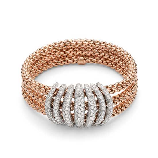 • Flexible bracelet entirely made of 18K rose gold rich diamond paving.