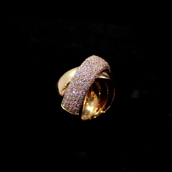This is a diamond ring coming in a rose gold setting. It is embellished with a clear diamond pave for an eye-catching sparkle. It effortlessly steals the limelight at the evening functions