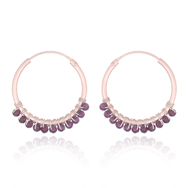 Rose Gold Plated Garnet 925 Hoop Earrings