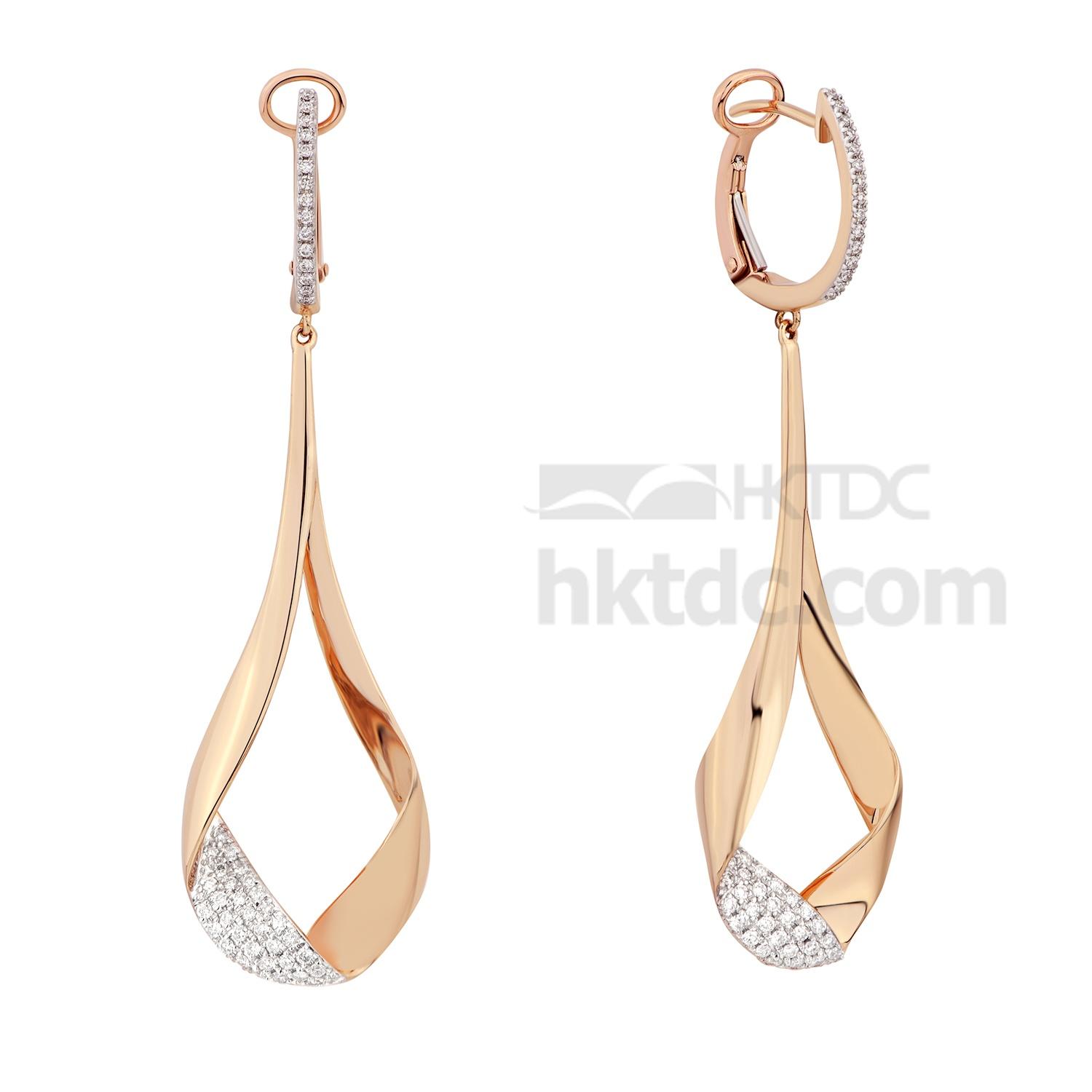 Rose Gold Ribbon Dangle Earrings with Diamond