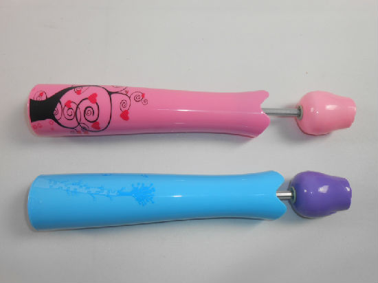 Eight silver-colored steel ribs with matching colored plastic tips.
