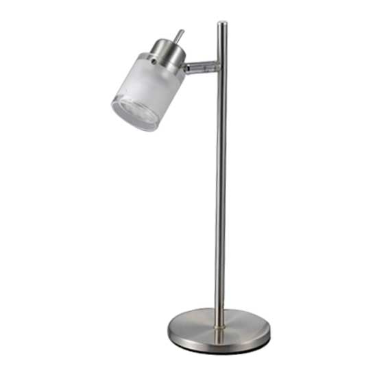 Featured is a silvery table lamp with a simple yet modern design. A rotary head is mounted on a sturdy stand, giving multi-directional illumination. Coming with a misty cylindrical shade, this lamp gives out warm light with maximum visual comfort. Enhance the look of your room with this contemporary table lamp.