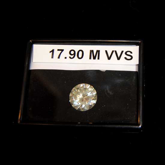 Featured here is a slightly tinted round brilliant diamond. This beautiful jewel exhibits dazzling shine and sparkle. It also exemplifies fine craftsmanship and precision.