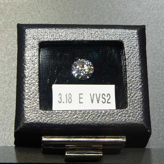The round cut diamond totaling 3.18ct comes in the valuable E color. It possesses multiple facets which radiate a lasting and arresting shine. This precious piece is a perfect finish for many fine jewelry applications.