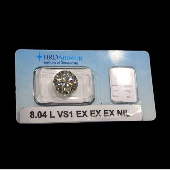 This eye-catching 8.04ct white diamond showcases a round brilliant design. The top-quality diamond boasts high color and clarity grade. It will add irrespirable beauty and allure to your jewelry project.