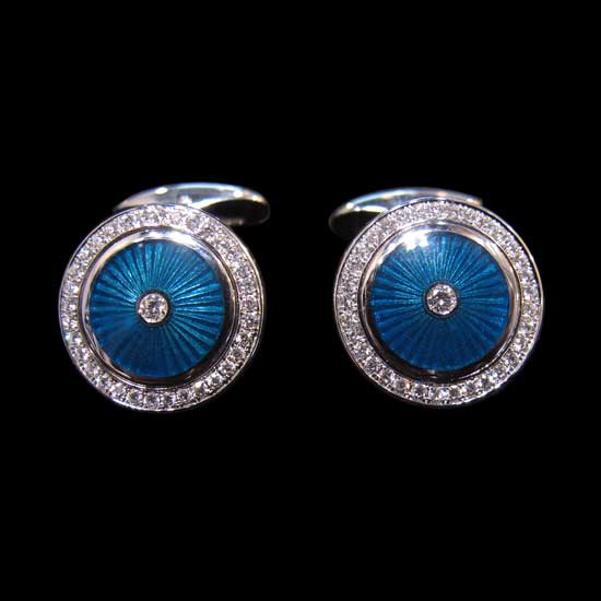 Round Enamel and Diamonds Cufflinks