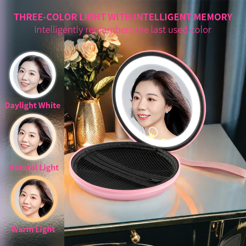 LED PU leather mini makeup bag—your portable vanity station. Built-in ring light with three modes: warm, white, and natural light for flawless makeup even in dim conditions. Features stepless dimming control. Luxe waterproof leather exterior resists wear and tear. Chic, durable, and travel-ready.