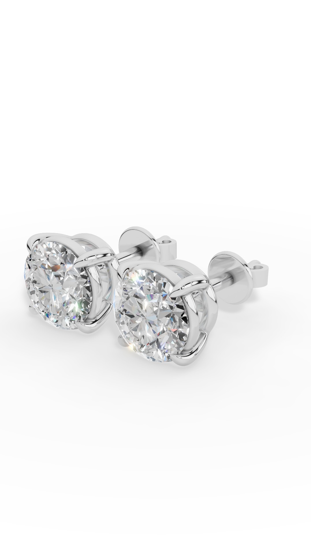 The round cut solitaire lab-grown diamond stud earrings showcase classic brilliance with a perfectly round diamond, set in a secure prong setting for timeless elegance and versatile everyday wear.