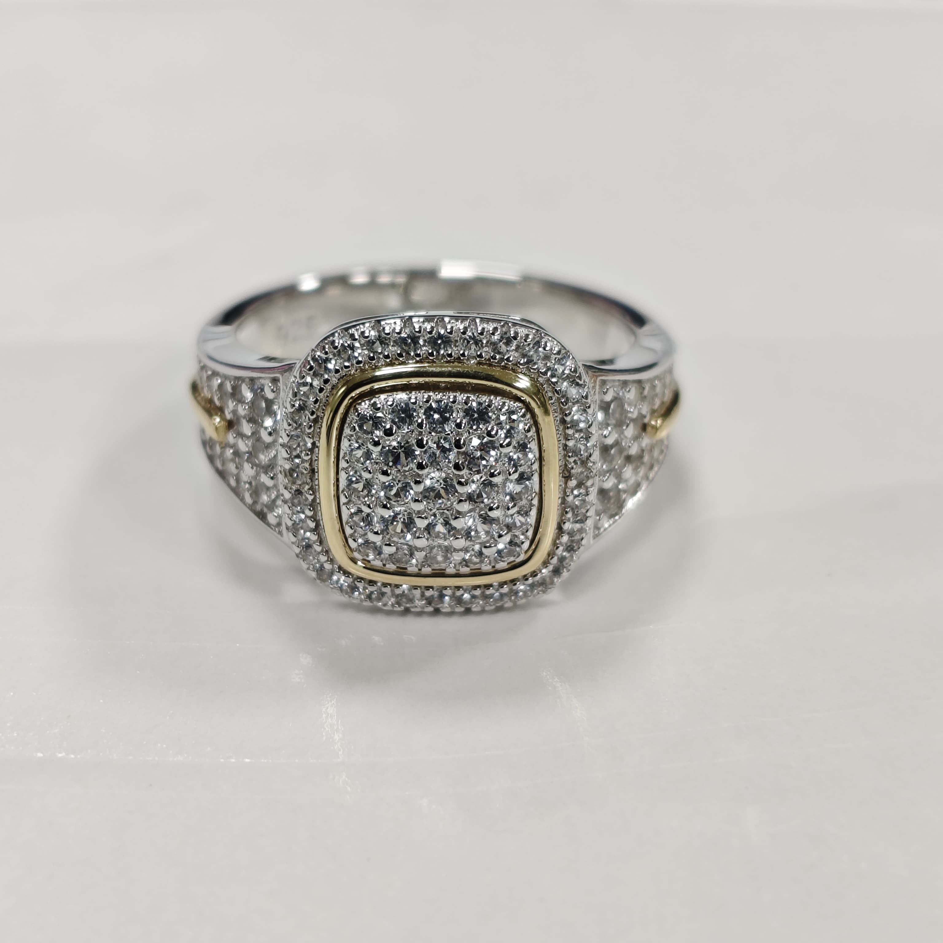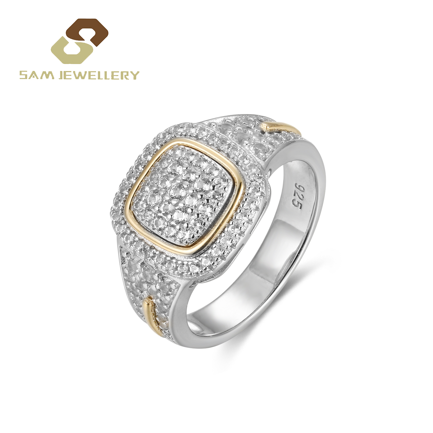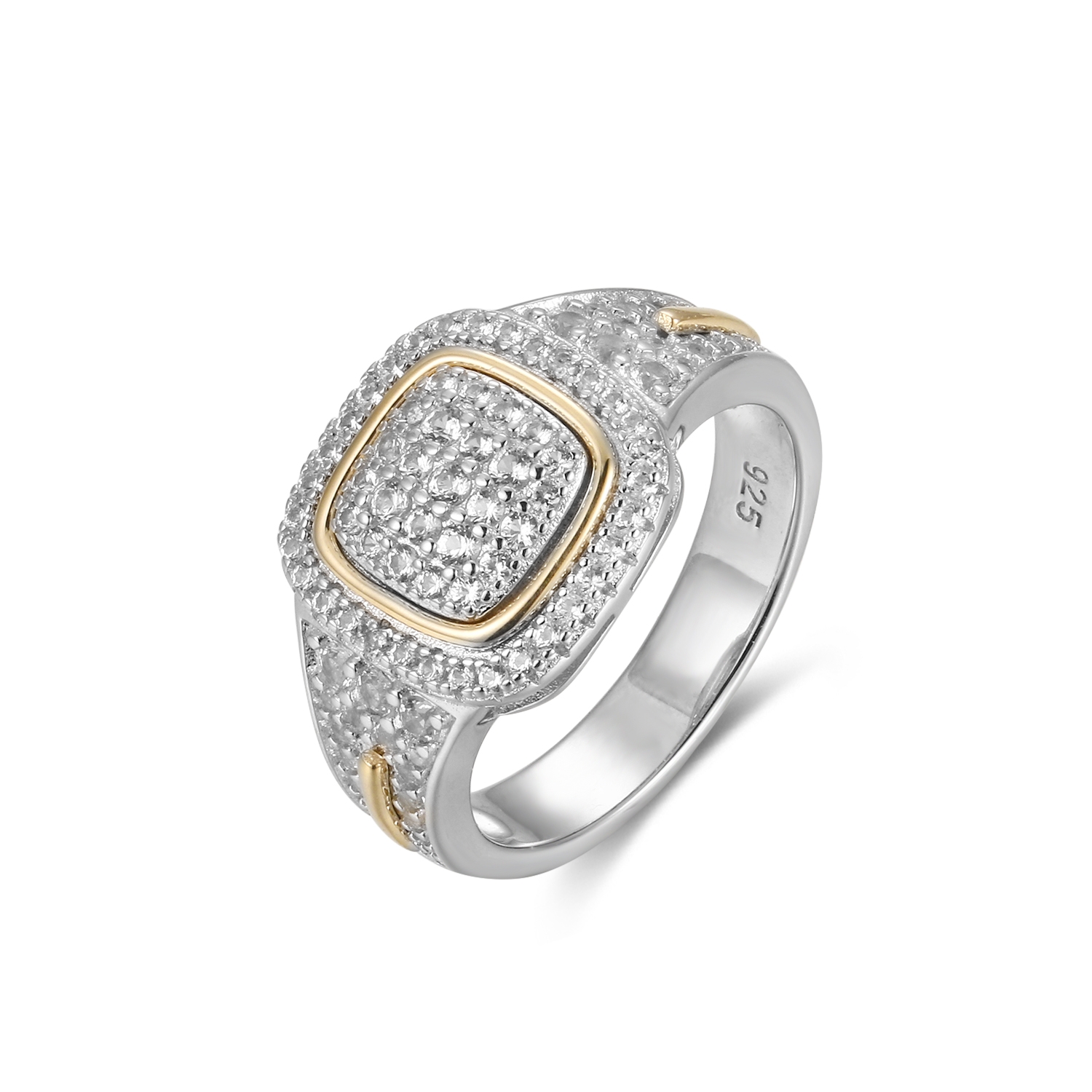 Round Square White Sapphire Ring 9K Gold and 925 Sterling Silver Iced Out Full Diamond Hip Hop Engagement Wedding Party Ring