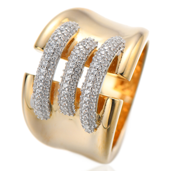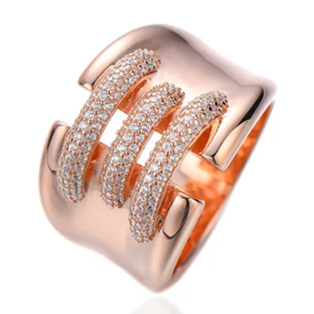 Round White Cubic Zircon Silver Ring With Rose Gold Plating