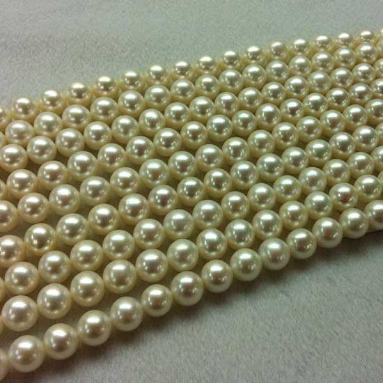 The white pearls flaunt natural beauty and luster. They are round in shape and deliver a touch of elegance. These round white pearls are ideal for necklaces and bracelets.