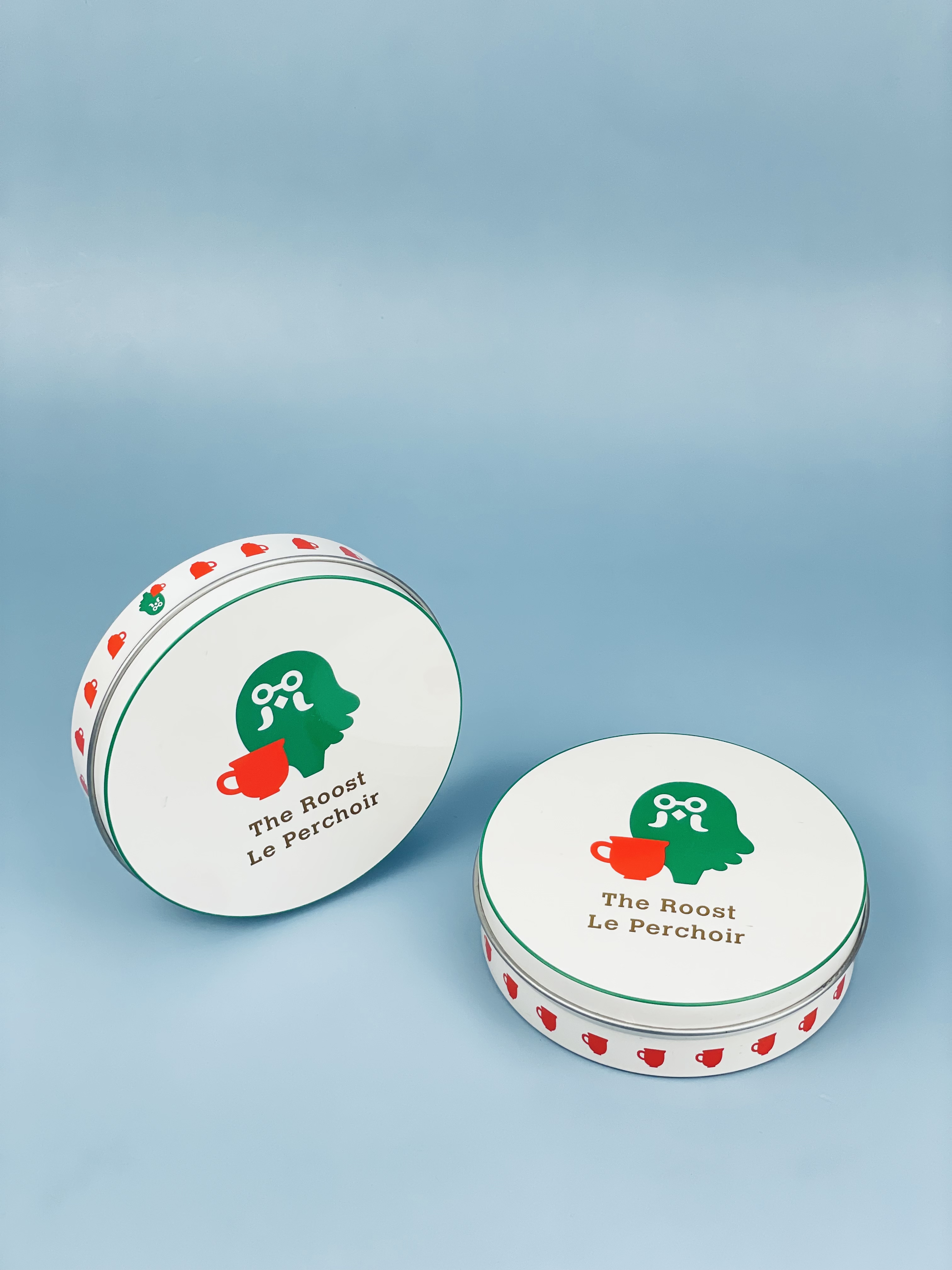Round white metal cream box