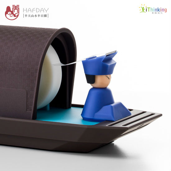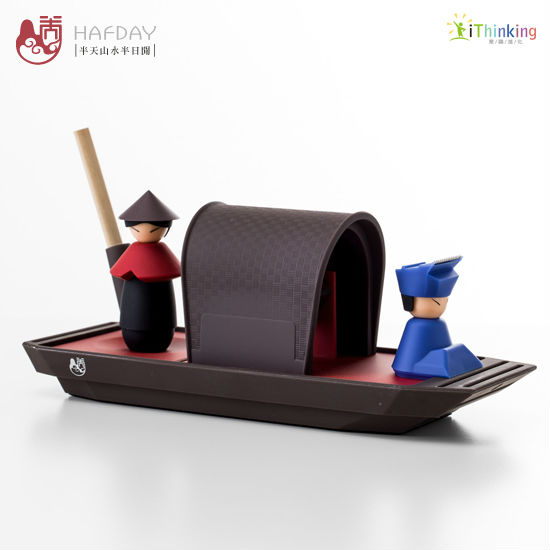 Transform your desktop into a peaceful lake setting with this adorable stationery set. Inspired by fishermen on rowboats, this 3-in-1 stationery set makes a poetic adornment simply by standing alone. A removable pen stand, magnetic paper clip holder, small storage box and tape dispenser are cleverly incorporated into the design with style and practicability in mind.