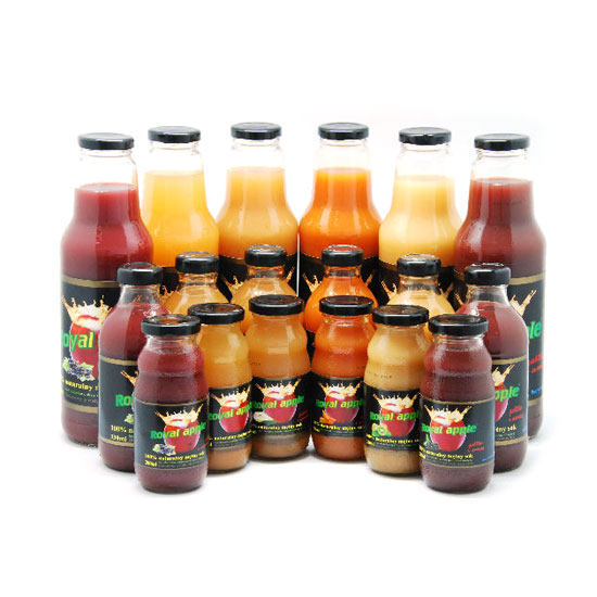 • Flavors available in bottles: apple, apple + chokeberry, apple + pear, apple + carrot, apple + blackcurrant, apple + kiwi.
