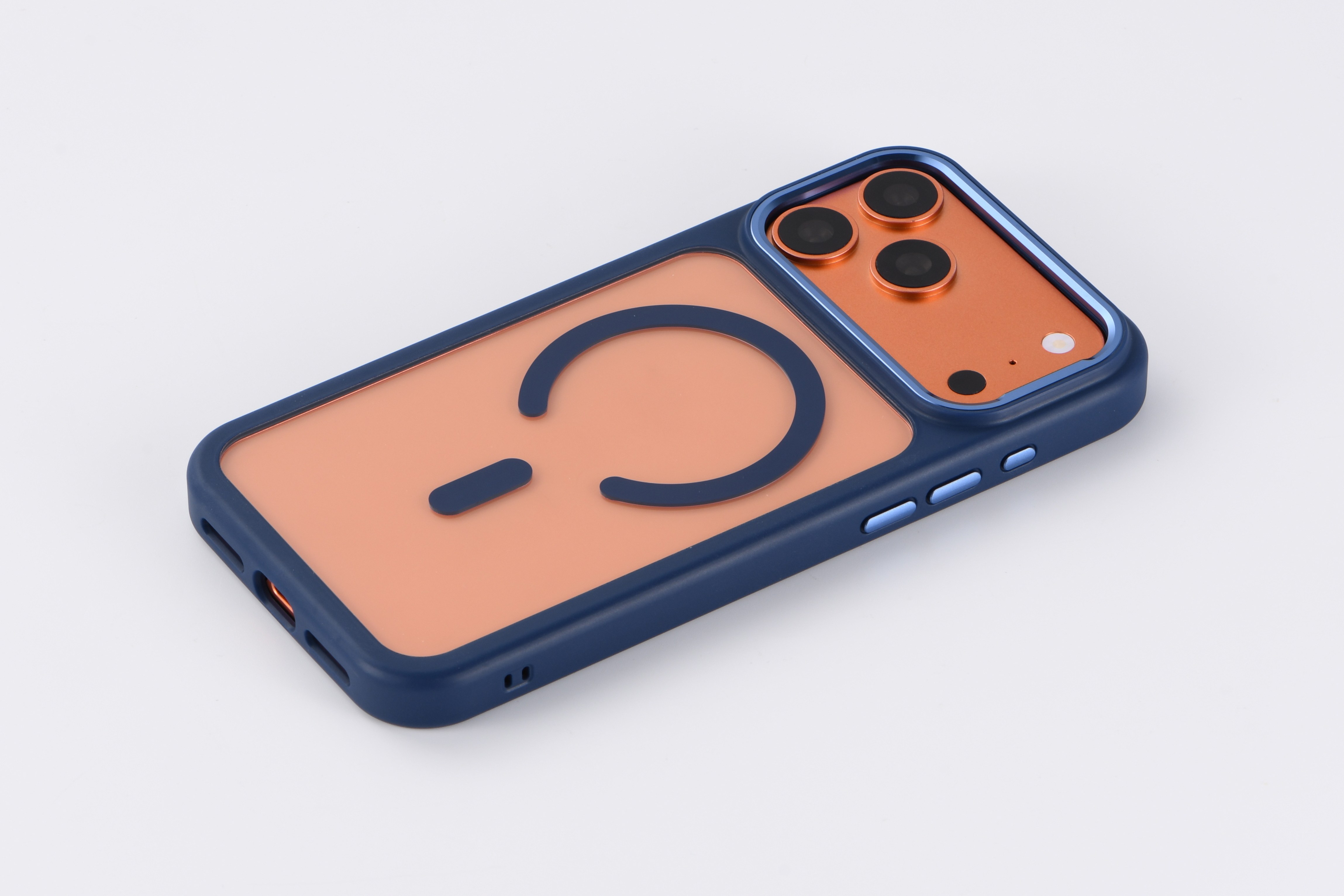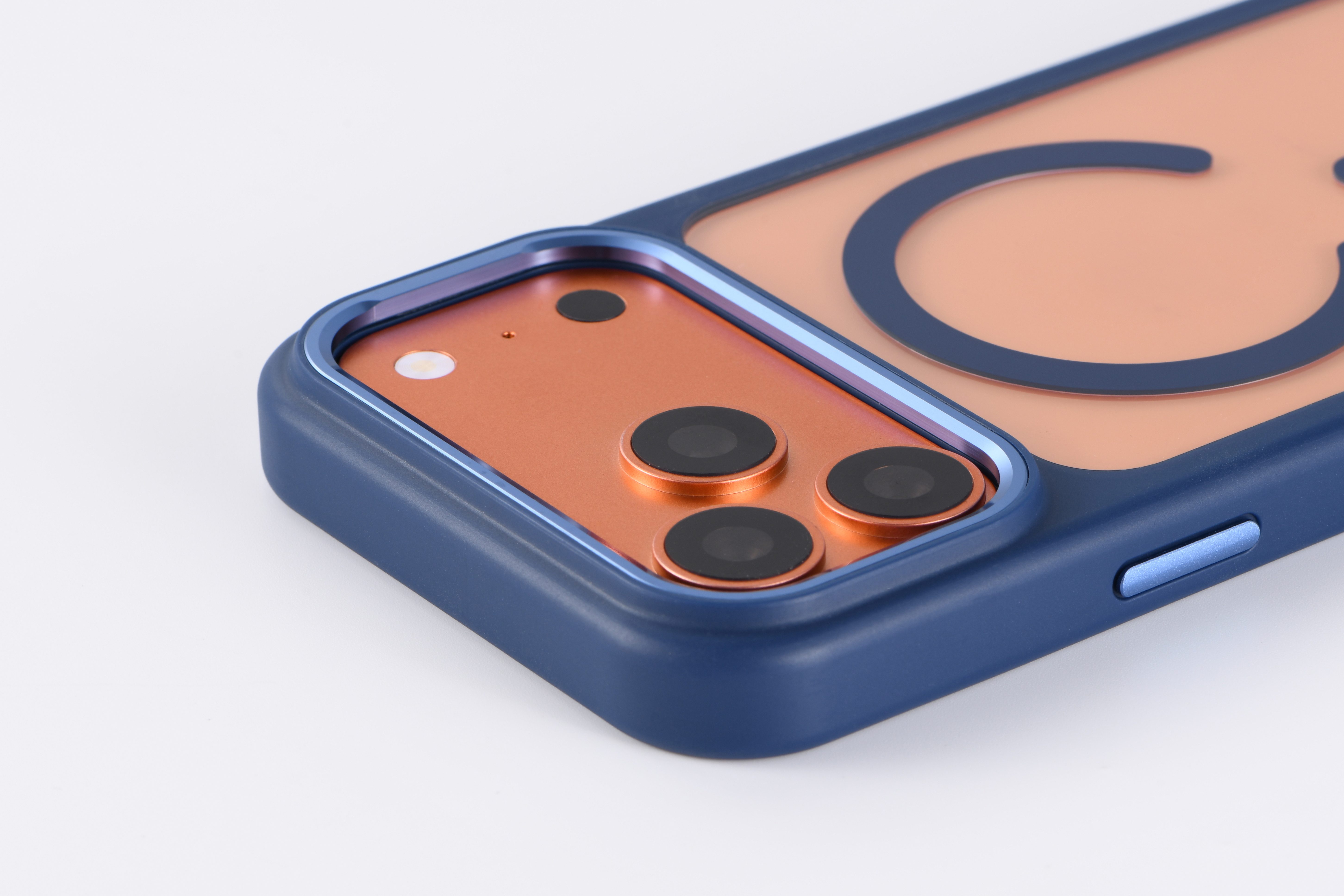 Royal Blue TPU Bumper + Clear PC Back MagSafe-Compatible Case (Large Camera Cutout)