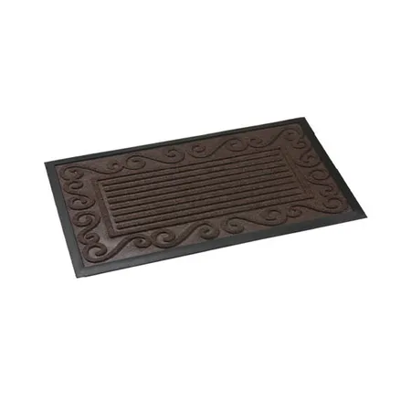 This is a rubber backed polypropylene mat with great quality. The surface features simple embossed patterns for an elegant touch. This excellent mat can be placed near doors to keep entrances clean.
