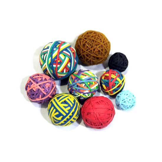 This rubber ball is rolled of colorful rubber bands. It boasts a highly durable structure for repeated use. This rubber ball is available in different colors for you to choose from.