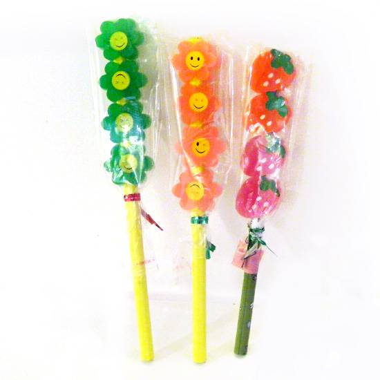 These are eraser and pencil sets where each contains 4 pieces of floral/strawberry-like erasers and a pencil. The stationery set are decorated colourfully.