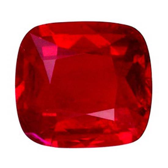 This is a ruby of pigeon blood red in colour. The ruby stone is of retangular shape and brilliantly cut. The ruby is sparkling and has a shiny appearance.