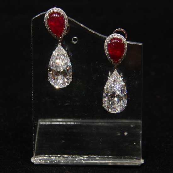 The dazzling ladies' earrings tout a dangling design finely crafted with top-grade materials. The lustrous settings are meticulously sculpted with twinkling diamonds, radiating a glow of sparkles with long-lasting shine. The astonishingly elegant ruby stones make them doubtlessly perfect for accentuating ladies' evening dresses. You are sure to be crowned the queen of the night at parties with these ruby diamond earrings.