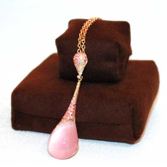 The exquisite necklace comes with an 18K gold cable chain. It is accented with small and large drop rubies with diamond settings. Complement your evening and party dresses with this gorgeous necklace.