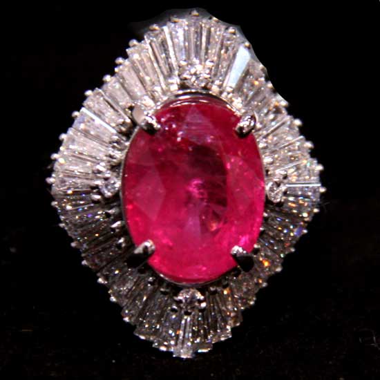 The ruby ring is beautifully crafted with sophisticated details. The ring features a rhombus shape set with a ruby and shimmering diamonds, showcases a sense of timeless elegance. This ruby ring makes a pretty way to enhance your grand wardrobe.