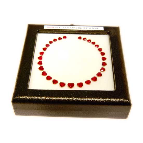 This ruby set flaunts 29 glittering rubies in the shape of heart. Each ruby features an exquisite cut which results in maximum radiation. With high level of clarity, this ruby set will enrich the value of your jewelry items.
