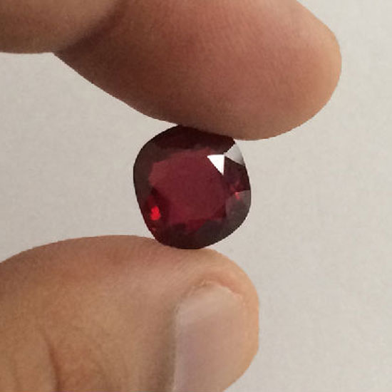 This ruby comes with a cushion cut, glittering in the utmost radiance in fabulous red. Being created deep inside the core of the Earth, ruby is distinguished by its fine color and good clarity. The precious ruby bears witness to the passionate love between couples.