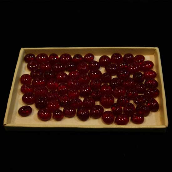 Shown here are ruby stones with a beautiful red color. The vivid and natural color makes the semi-precious stones perfect to embellish accessories. The high-quality ruby stones are well polished for decorating a rings, necklaces and earrings.
