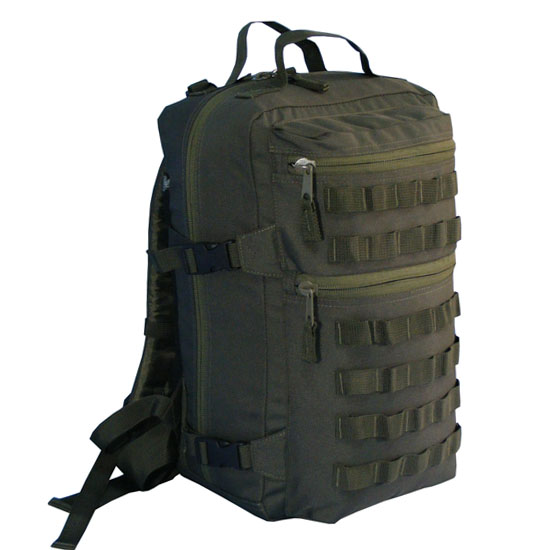 Go hiking with this stylish yet useful backpack. The pack features a zip around roomy main compartment for your belongings and two front zipped pockets for smaller essentials. This bag highlights multiple webbing loops on the front which provide functionality while adding focal point.