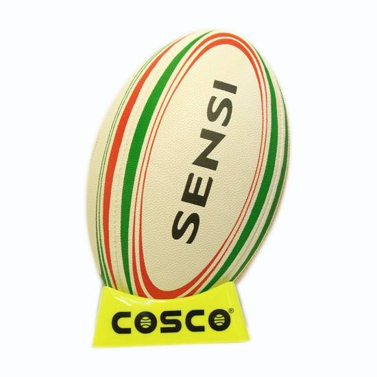 This rugby ball is in a streamlined design. The green and orange lines on the surface catch people's attention. This ball is made of flexible rubber, ensuring the durability. It is suitable for both trainings and matches.