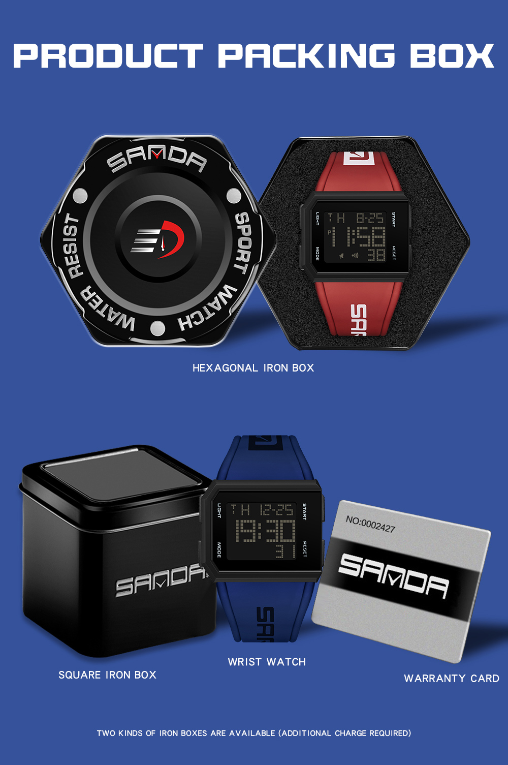 The SANDA Simple Square Watch features a classic square design. Its full - black mirror watch dial ensures a clear and intuitive time display, and it's simple yet durable.
