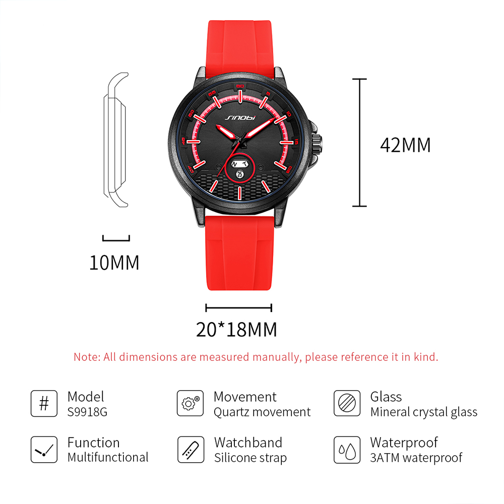 SINOBI Luxury Outdoor Sports Man Watch Analog Date Quartz Wrist Watch Men's Waterproof Watches Feminino Montre Femme