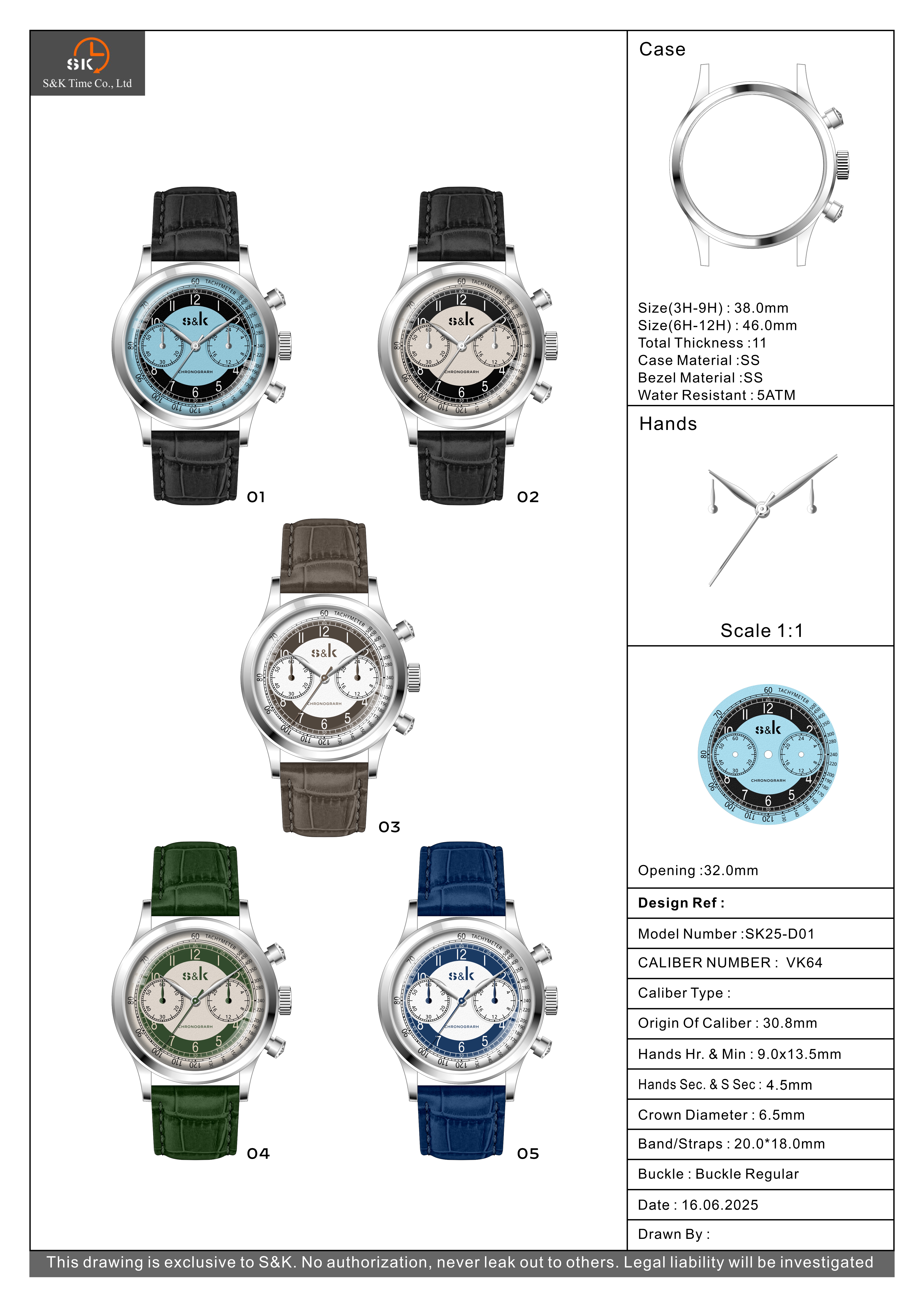 316L stainless steel case, VK64 movement, sandblast dial, 5ATM