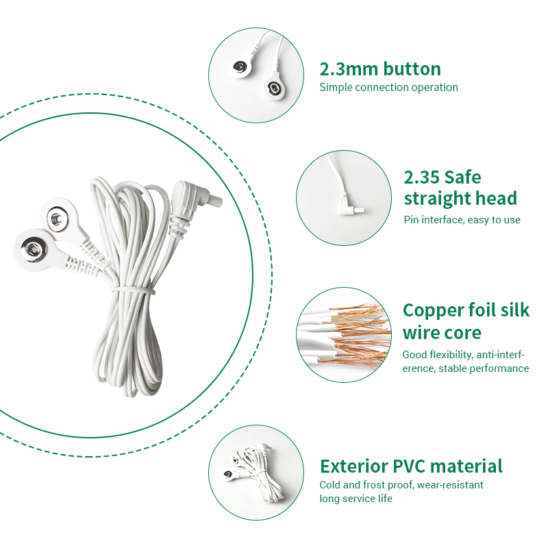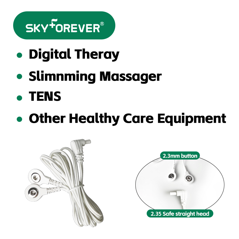 SKYFOREVER 2.35DC Wire Unit Durable Electrode 2 Lead Wire 2.35mm Pins Electrode Cable for TENS/EMS Device