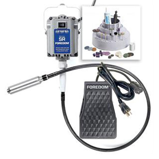 This tool kit includes the new and more powerful Foredom SR motor, which combines all the features of the CC, S and SR motors into one. The motor operates at lower temperatures for longer life. The tool kit offers the best value and features smart tool combinations for specific applications.