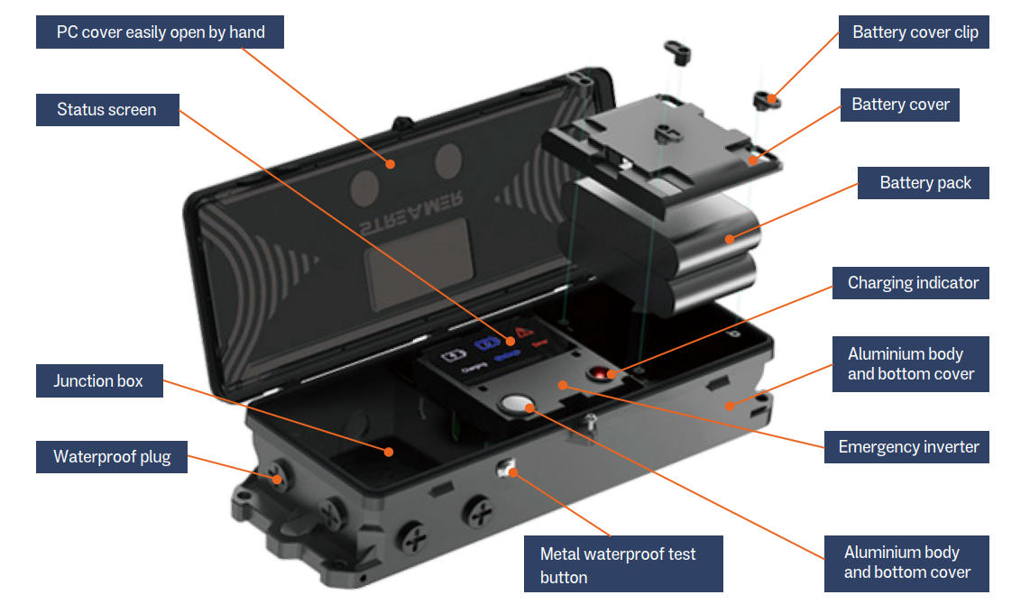 -Equipped with high-capacity, long-life LFP (LiFePO4) battery pack.