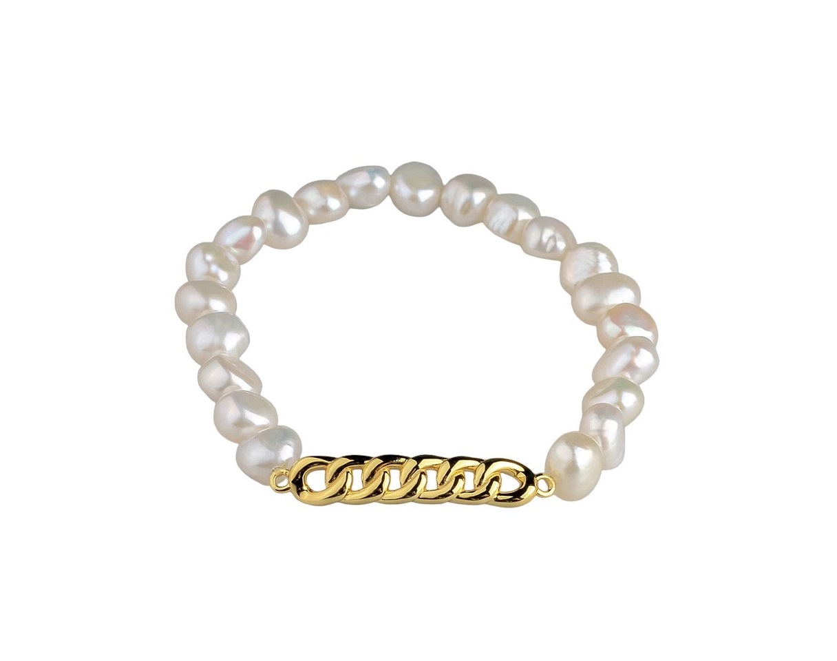STERLING SILVER BRACELET WITH 7-7.5MM IRREGULAR FRESHWATER PEARL, YELLOW GOLD PLATED
