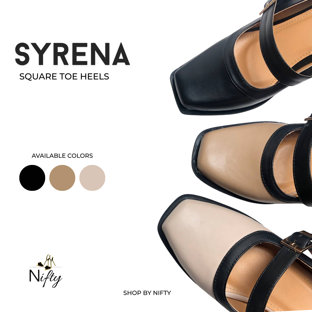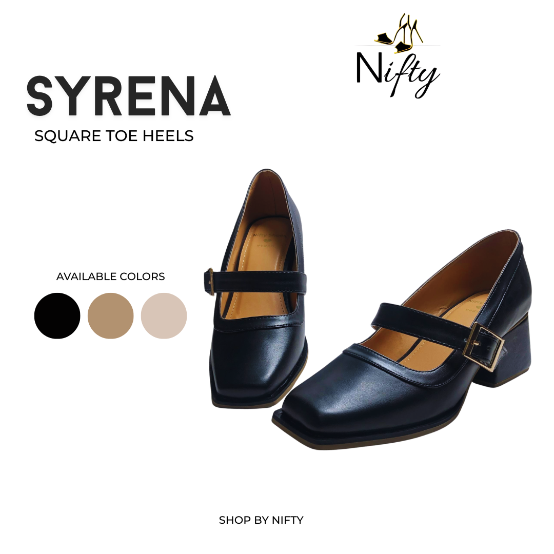 Designed with a square-toe silhouette, adjustable strap with gold buckle, and a sturdy block heel, Syrena ensures both elegance and comfort for any occasion.